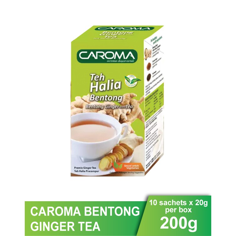 Teh halia bentong rm45 30 teabag Teh belalai gajah rm45 30 teabag Teh mas cotek plus rm45 30 teabag. CAROMA BENTONG GINGER TEA WITH COCONUT 20g x 10s Halal Teh Halia Kelapa Halia Bentong Ginger Tea. Halal CAROMA Bentong Ginger are rich in Antioxidants and Potassium to protect your cells from the effects of free radicals and able to reduce an overabundance of inflammation in your body.